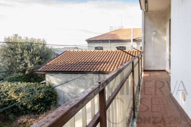 – Primo piano: appartamento con ingresso indipendente, composta da soggiorno, cucina abitabile, due camere, servizio, balcone e ampio sottotetto mansardato con balcone;